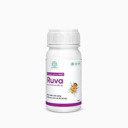 - BS23 - Ruva là sự kế thừa thành tựu nghiên cứu khoa học và ứng dụng thực tiễn vào canh tác. Sản phẩm kết hợp hai cơ chế xua đuổi và tiêu diệt, đem lại hiệu quả tối ưu trong việc kiểm soát mật số và xử lý ruồi vàng phá hại. Phun BS23 - Ruva cho cây trồng không gây ra hiện tượng tồn dư hóa chất, đảm bảo các yêu cầu về an toàn thực phẩm, nông sản đủ điều kiện để xuất khẩu đi các nước trên thế giới.