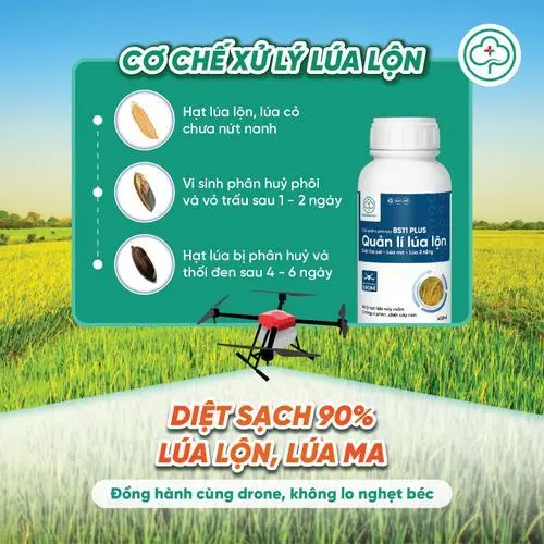 Lúa lộn, lúa ma, lúa 2 tầng,...có khả năng sinh trưởng mạnh, thường chèn ép và cạnh tranh dinh dưỡng với các loại lúa khác, khó bị diệt trừ nên gây ảnh hưởng nhiều đến năng suất và chất lượng gạo. Vì vậy, việc tìm cách diệt lúa cỏ, lúa lộn hay cách trị lúa ma trước khi xuống giống để bảo vệ cây lúa từ những giai đoạn đầu tiên là tiền đề để có được mùa vàng bội thu. BS11 Plus Chế phẩm sinh học diệt trừ 90% lúa lộn được cải tiến từ sản phẩm BS11 được bà con nông dân tin dùng những năm gần đây.