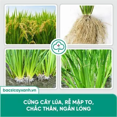 - Cứng cây lúa, dày lá, mập thân, ngắn lóng và chống đổ ngã: Dinh dưỡng từ Kẽm có tác dụng thúc đẩy quá trình sinh trưởng, giúp cứng cây lúa, mập thân, dày lá, lóng lúa ngắn, nuôi dưỡng tim đèn, hạn chế đổ ngã lúa, nhất là vào thời kỳ lúa trổ - chín.
