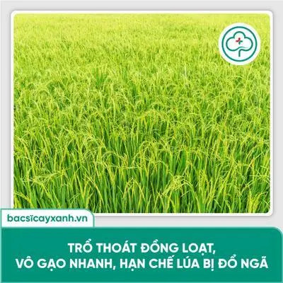 - Trổ thoát đều, vô gạo cực mạnh, hạt chắc mẩy: Bo giúp thúc đẩy quá trình ra hoa, thụ phấn và hình thành hạt nhanh chóng, tăng quá trình vận chuyển dinh dưỡng nuôi hạt, làm hạt chắc bóng.