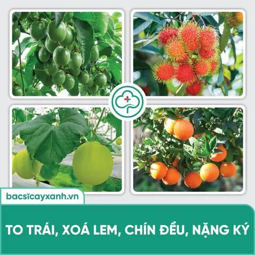 - Nuôi trái lớn nhanh, to trái, xoá lem, chín đều: Việc cung cấp dinh dưỡng thiết yếu suốt quá trình phát triển và ra hoa đậu trái sẽ giúp cây trồng bền khoẻ cây, đậu được trái nhiều, không bị rụng trái sinh lý, trái lớn nhanh, to khoẻ, chín đều, nặng ký và sáng bóng đẹp mã, đem lại giá trị kinh tế cao.