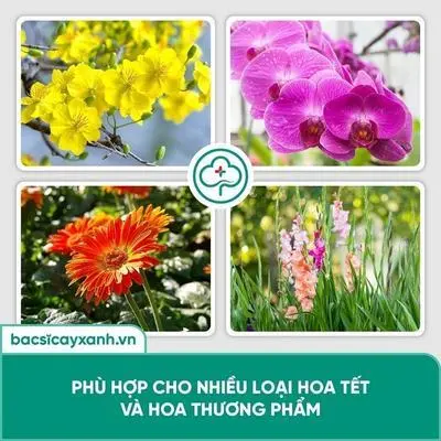 - Phù hợp cho các loại hoa như Vạn thọ, Cúc mâm xôi, Cúc Hà Lan, Cúc Hàn Quốc, Mai Vàng, Hoa Đào, Hoa Lan, cũng như hoa chậu, hoa trang trí và hoa kinh doanh quanh năm.