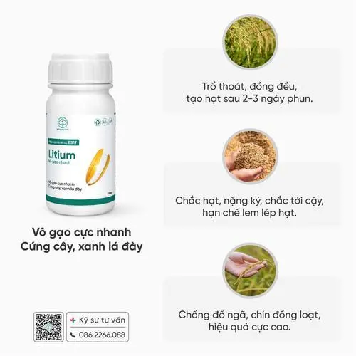 BS17 - Vô gạo Litium bổ sung đầy đủ dinh dưỡng đa lượng thiết yếu cho cây lúa giúp cây lúa vô gạo nhanh, trổ thoát, trổ đồng loạt, chuyển hóa dinh dưỡng tạo hạt nhanh.